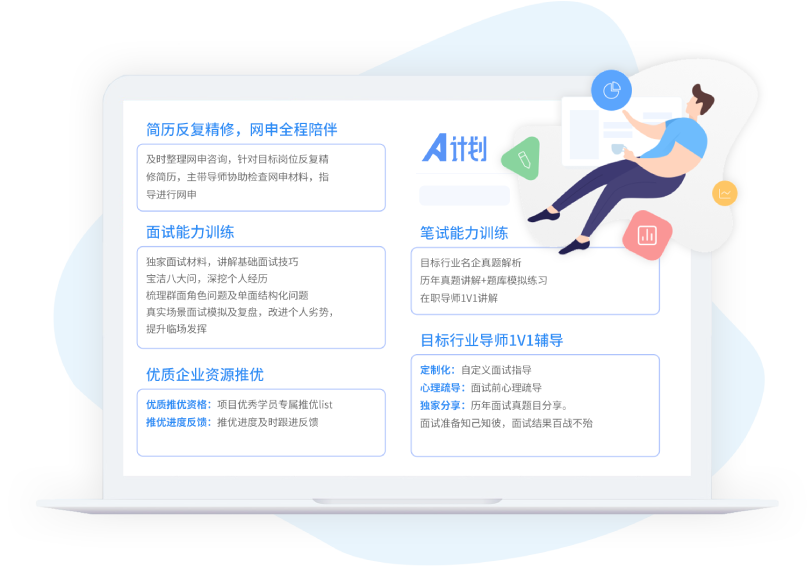 面向简历、网申、笔试、面试等多个秋招环节,进行一对一的求职技能提升