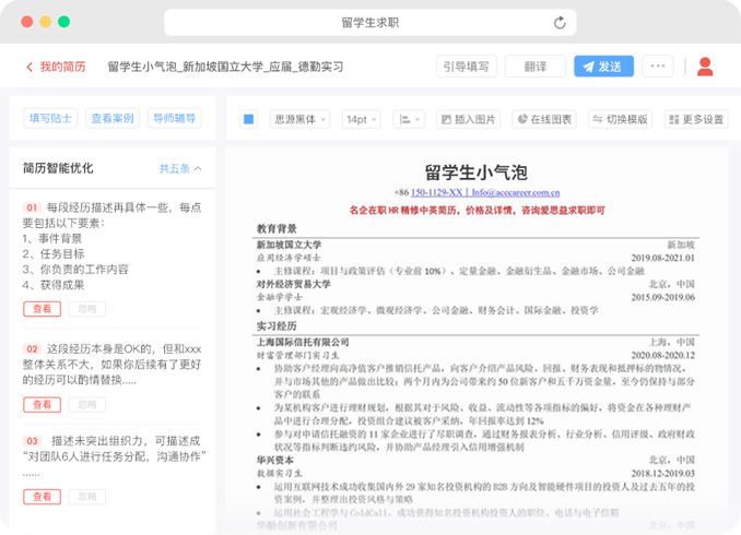目标行业名企HR高质量指导,以目标行业及职位为导向,精修简历中的每个细节打造学员背景亮点,名企offer轻松到手